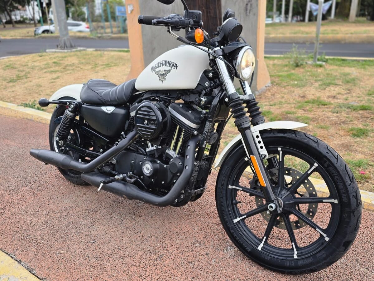 La Harley-Davidson Iron 883 es una motocicleta tipo cruiser que destaca por su estilo oscuro, minimalista y con mucha personalidad. Equipada con un motor de 883 cc, ofrece un manejo suave con buen torque, ideal para disfrutar recorridos relajados con ese característico sonido Harley.