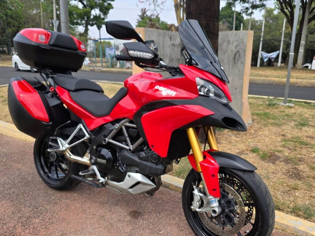 La Ducati Multistrada 1200 S Touring es una motocicleta premium reconocida por su potencia, comodidad y gran versatilidad para trayectos largos. Equipada con un motor Testastretta de 1198 cc, ofrece aceleración fuerte, excelente respuesta y un manejo muy emocionante tanto en ciudad como en carretera.