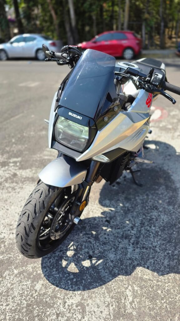 La Suzuki Katana (GSX‑S1000S) es una naked deportiva que combina diseño retro inspirado en la Katana clásica con tecnología moderna. Equipada con un motor de 4 cilindros en línea de 999 cc derivado de la GSX-R, ofrece aceleración fuerte, excelente respuesta y una conducción muy emocionante.