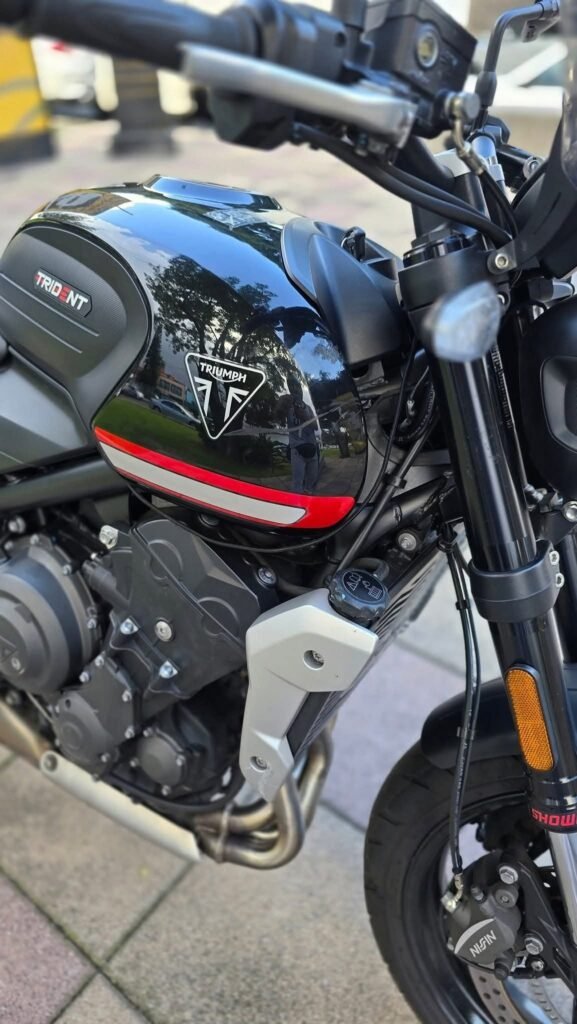 La Triumph Trident 660 modelo 2022 es una Naked Premium, reconocida por su manejo ágil, su motor tricilíndrico de 660 cc y su respuesta suave pero contundente. Con tecnología moderna, excelente estabilidad y ergonomía cómoda, es ideal tanto para ciudad como para carretera.