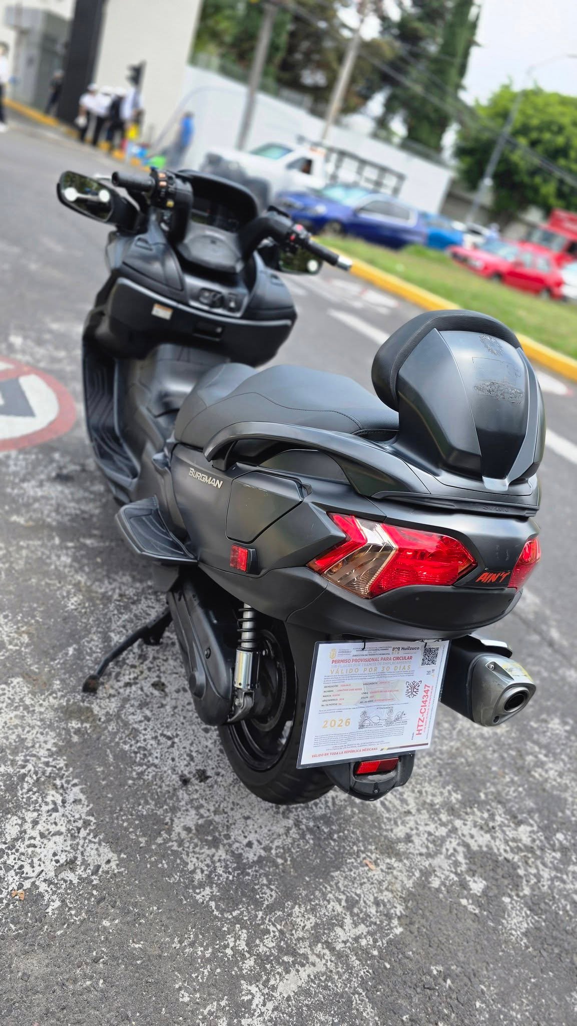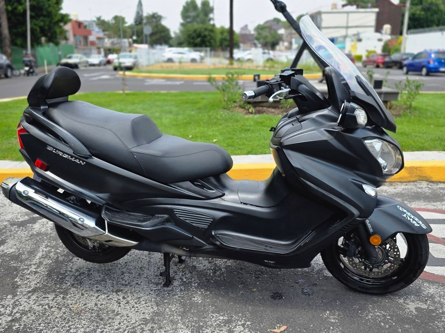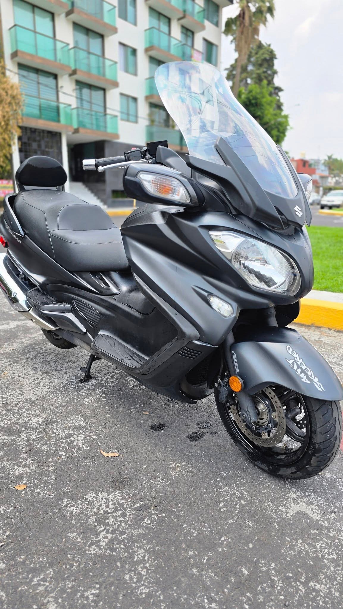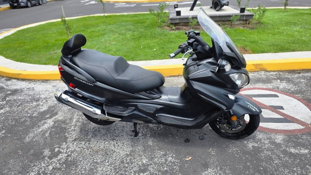 La Suzuki Burgman 650 Executive es un maxi-scooter premium reconocido por su comodidad, tecnología y gran desempeño para ciudad y carretera. Equipada con un motor bicilíndrico de 638 cc, ofrece una conducción suave, silenciosa y muy práctica para el día a día.